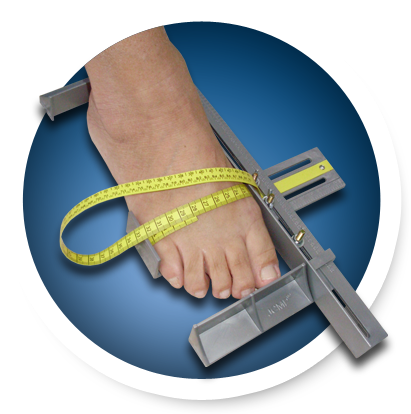 O presente modelo de utilidade refere-se a um inovador dispositivo que possibilita, de forma fácil, rápida e precisa a medição das três dimensões fundamentais do pé humano: o comprimento, a largura e a circunferência.